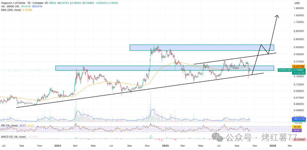 总而言之:短期看,市场被“鲸鱼”的抛售所主导,情绪恐慌,图表闪烁红色警告。长期看,狗狗币强大的社区文化和即将到来的主流金融整合,仍为它保留了无限的想象空间。