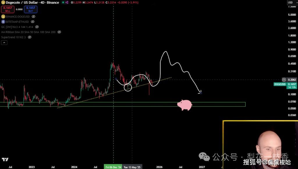 就狗狗币而言,他绘制了一幅清晰的决策树。如果比特币在周收盘前重回 103,000 美元至 104,000 美元区间,并确认高于移动平均线,那么狗狗币的上涨窗口将重新开启,有望在第四季度末至明年 1 月期间迎来一波上涨行情。如果比特币收盘价跌破 102,000 美元左右并持续疲软,“熊市来临”,狗狗币的价格可能会跌至“5 美分”,甚至“可能跌破这个价位”,具体取决于比特币下跌的幅度。