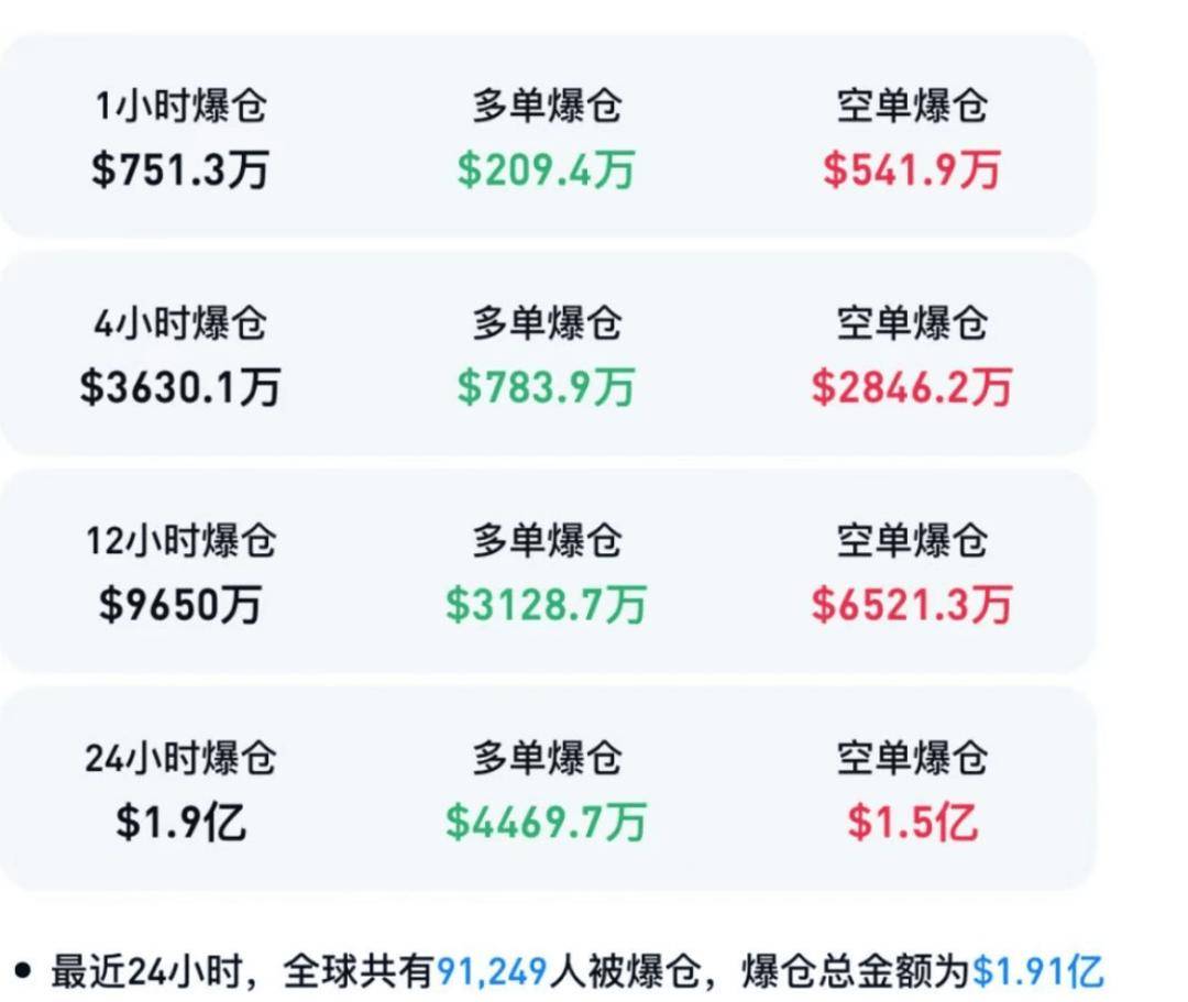 CoinGlass数据显示,最近24小时,加密货币市场共有超9万人爆仓,爆仓总金额近2亿美元。