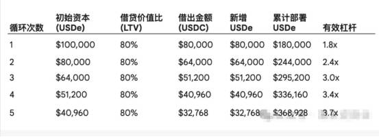 高收/益仍无法满足部分投zi者的贪欲,循环贷模式应运而生:用手中的USDe在借贷平台抵押,换出锚定实物美元的稳定币,再买入更多USDe重复抵押,循环4-5次后可加3.7倍杠杆,年化收/益也被放大至24%。这个看似完美的财富永动机,在10月10日迎来了致命一击。然而这样的高收/益仍满足不了部分投zi者的胃口,循环贷模式随之出现:先将手中的USDe在借贷平台抵押,换出与实物美元挂钩的稳定币,再用这些稳定币购买更多USDe,之后再次抵押,如此循环4-5次,可叠加3.7倍杠杆,年化收/益也被提升至24%。这个看似无懈可击的赚/钱机器,在10月10日遭遇了毁灭性打击。