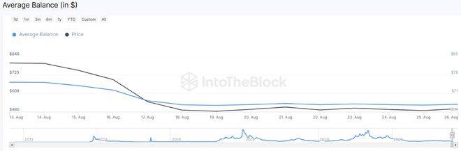 有趣的是,莱特币的 OI 加权融资利率已从 8 月 20 日的 -0.025% 升至 0.004%。正的资金利率表明看涨情绪,因为多头交易者向空头交易者支付费用以维持其合约。然而,平均余额指标一直在稳步下降,从 8 月 13 日的高点 671 美元跌至今天的 528 美元。