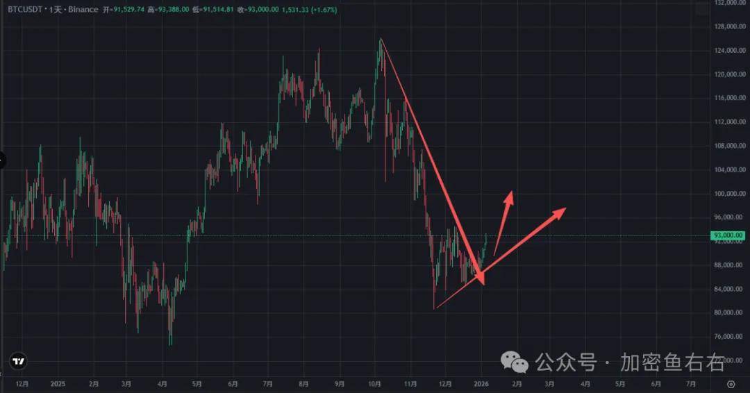 (1)压力位:93500—94200,94200附近轻仓开空,止损在94800。没有突破后的回踩就可以止盈50%仓位,剩下的带上原价止损或则94800止损最后也不会亏钱。