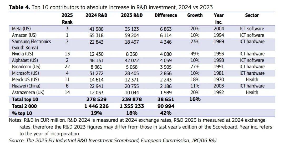 ● 在最新的全球企业研发经费投入排名中,华为以229.4亿欧元位列全球第六,成为唯一进入全球前十的中国企业。腾讯(排名20位)、比亚迪(排名37位)等来自深圳的上榜企业也在榜单中领跑中国内地企业。