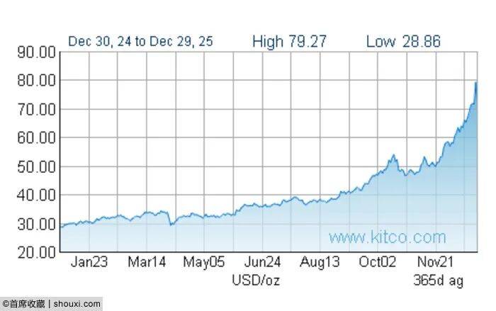 白银从年初的28-29美元/盎司起步,一度到达84美元/盎司以上的历史高位。截至12月底,全年累计涨幅约160%-170%,远超黄金同期约70%的涨幅,12月单月波幅甚至高达28美元,创下有记录以来的最大单月涨幅,呈现出史诗级行情。由于白银价格上涨,市场大量银币价格也随之提高,交易活跃。