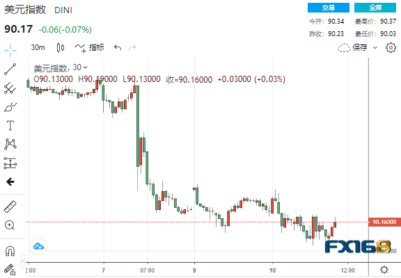 衡量美元兑六种货币的美元指数最低触及90.03,为2月26日以来的最低水平。