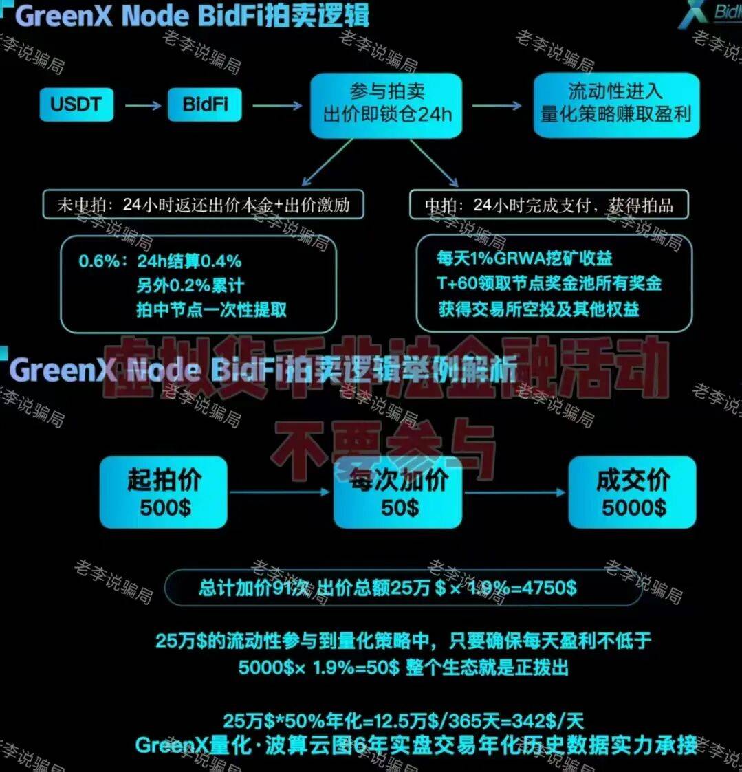 更不要说项目方吹嘘的AI量化高年化、RWA资产稳定回报,基本没有任何权威机构验证真伪,拍卖资金和量化资金的去向不明,说白了就是用后来投资者的钱,给前面的人发“收益”,一旦后续没人进场,资金链必然断裂,绝大多数人都会血本无归。