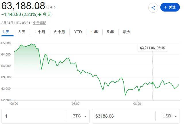 截至发稿,比特币价格下跌2.23%至63188美元,过去一个月跌幅接近30%。比特币也即将迎来连续第五个月下跌,并创下2018年以来最长的连跌纪录。