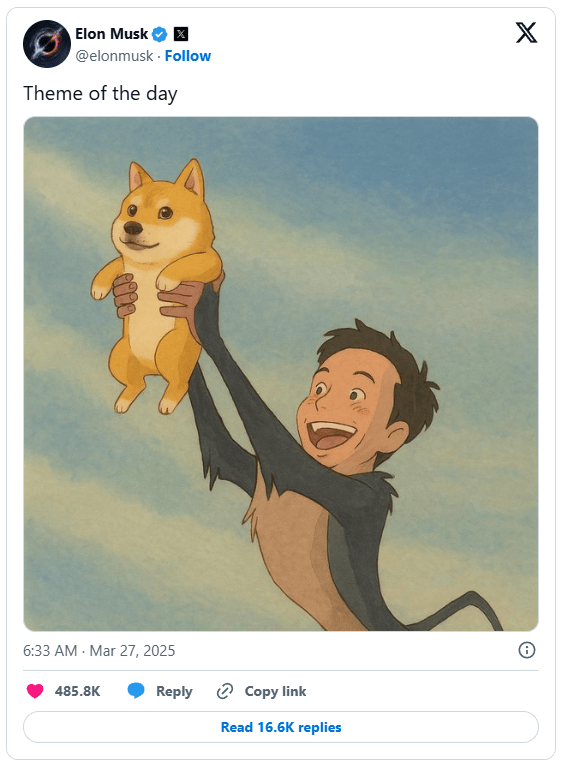 他发布了一张漫画,显然是在引用电影《狮子王》的造型,但主角不是一只小狮子,而是一只小狗。