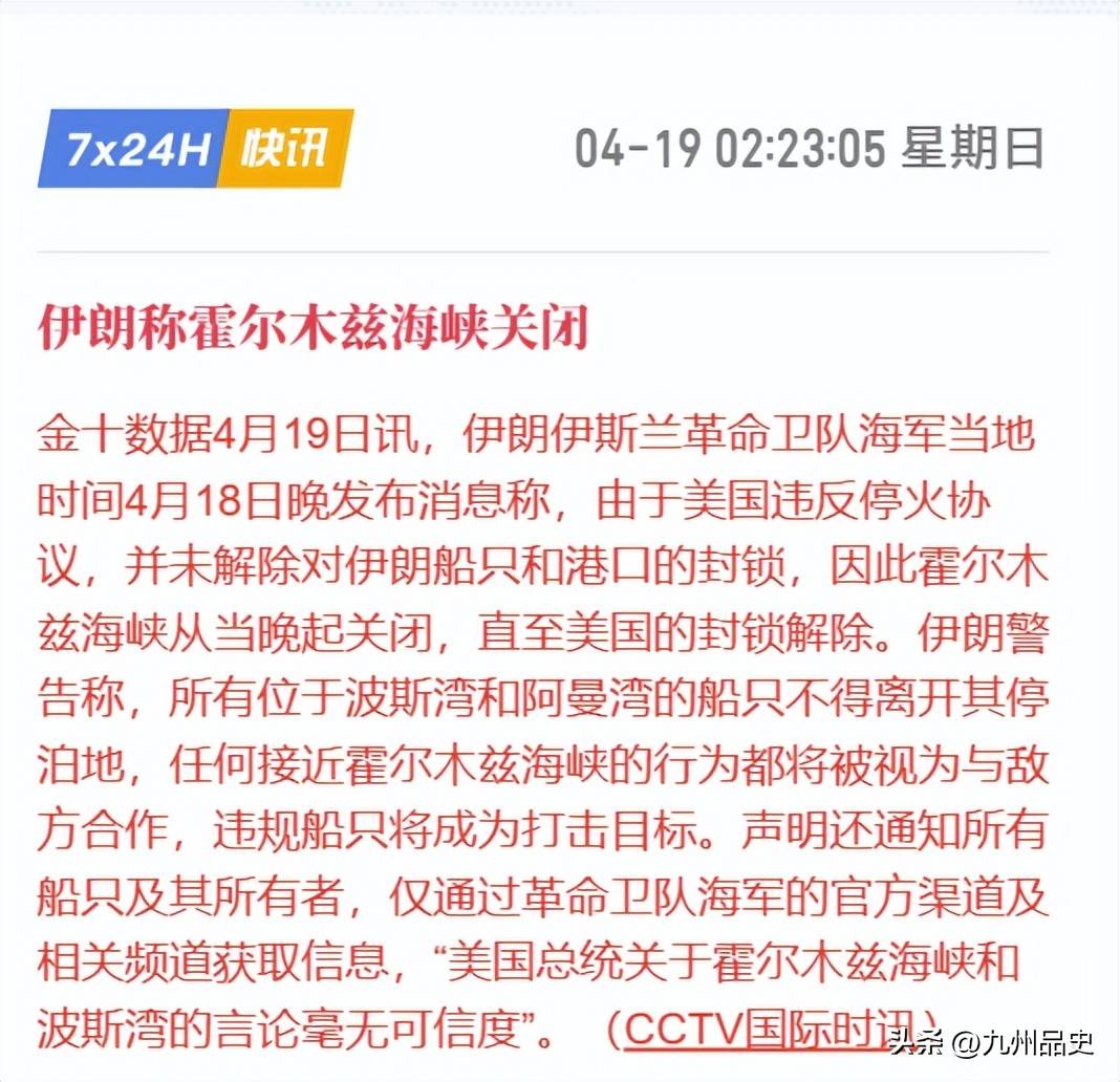 同一天,伊朗最高领袖穆杰塔巴·哈梅内伊在社交媒体上甩出一句狠话,说伊朗海军已经准备好给敌人新的惨败。4月19日凌晨,革命卫队正式发布声明,宣布海峡关闭,理由很直接:美国没有解除对伊朗港口的封锁。一句话,你不解我的封锁,我就继续关我的海峡。